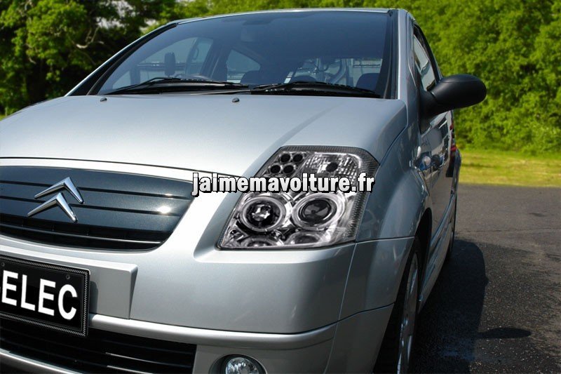 Contrairement à la Citroën C1, vous aurez accès à un peu plus de choix de pièces pour la Citroën C2. Notamment les phares avants angel eyes, ou encore les feux arrières tuning. De même que la Citroën C1, vous retrouverez un becquet sport pour votre Citroën C2.