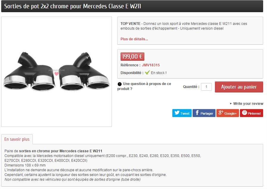 Ces embouts d’échappement sont dédiés aux Mercedes classe E, motorisation diesel uniquement.