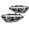 Phares avants led pour BMW Série 3 F30 F31. Année de 10/2011 au 05/2015. Totalement à LED. Avec anneaux angel eyes look 3D. Uniquement pour les modèles sans phares xénon d'origine.