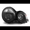 Faros delanteros Mercedes Clase E W210 Fase 1. Con luces de posición ANGEL EYES (anillos blancos). Año de 1995 a 1999. Regulación manual. Color negro.
