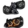 Paire d'angel eyes pour Opel Corsa C - Version couleur noir - Marque Depo - Avec double anneaux couleur jaune